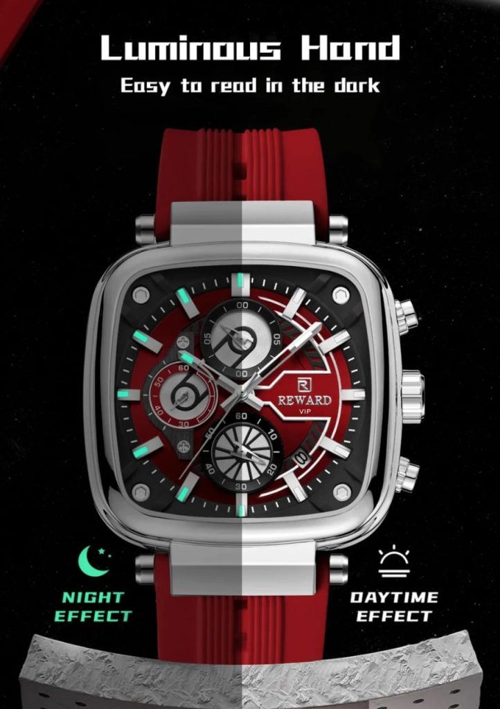 Finally, a luxury watch you’ll actually want to wear all day. The Reward Fashion Square Case brings that modern, “Big Boy” aesthetic without the heavy, pinching metal straps. Whether you’re caught in a sudden Lagos rain or sweating it out at an event, its waterproof build and breathable silicone strap keep you looking fresh and feeling cool.